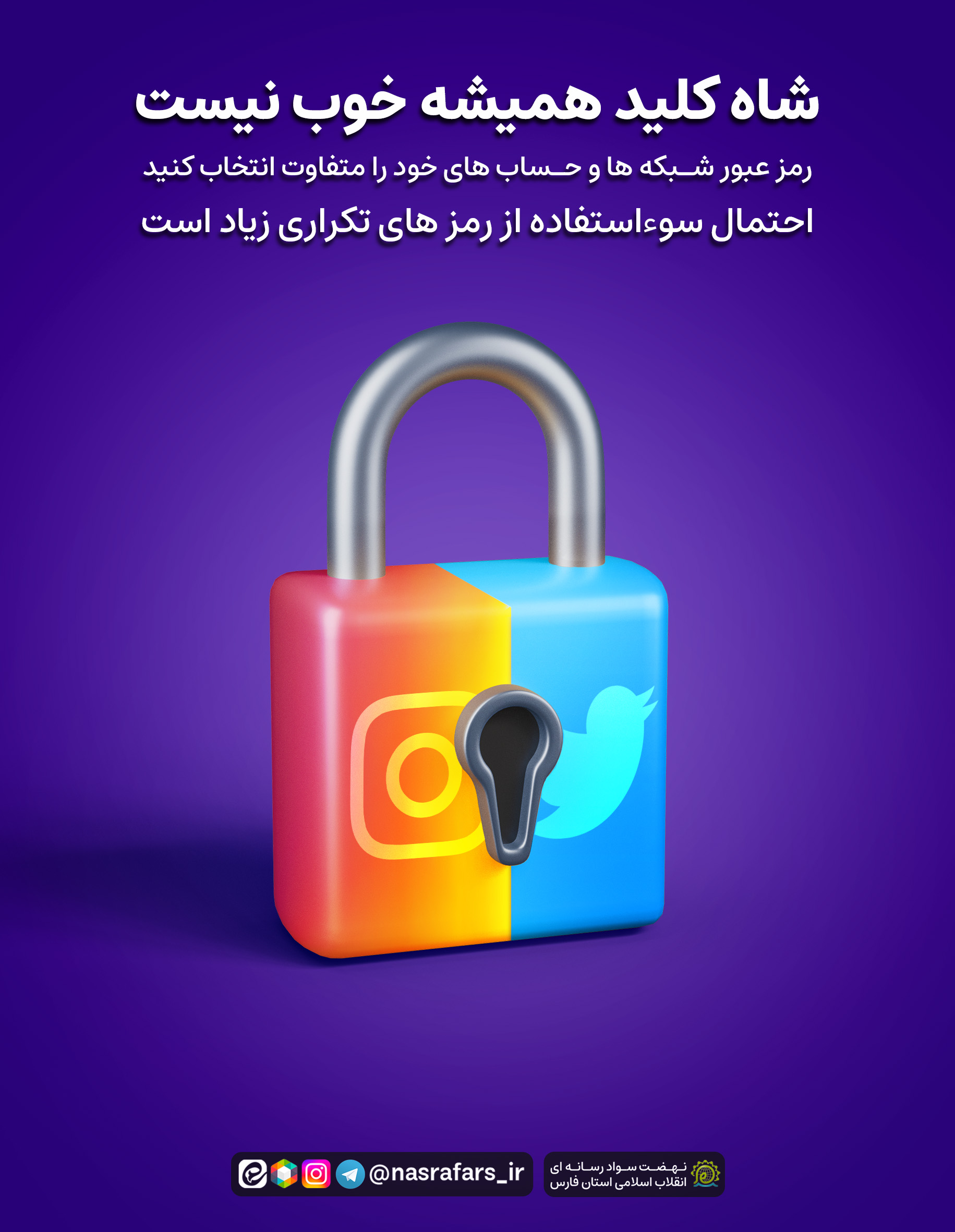رمز عبور شبکه ها و حساب های خود را متفاوت انتخاب کنید احتمال سوء استفاده از رمز های تکراری زیاد است.
